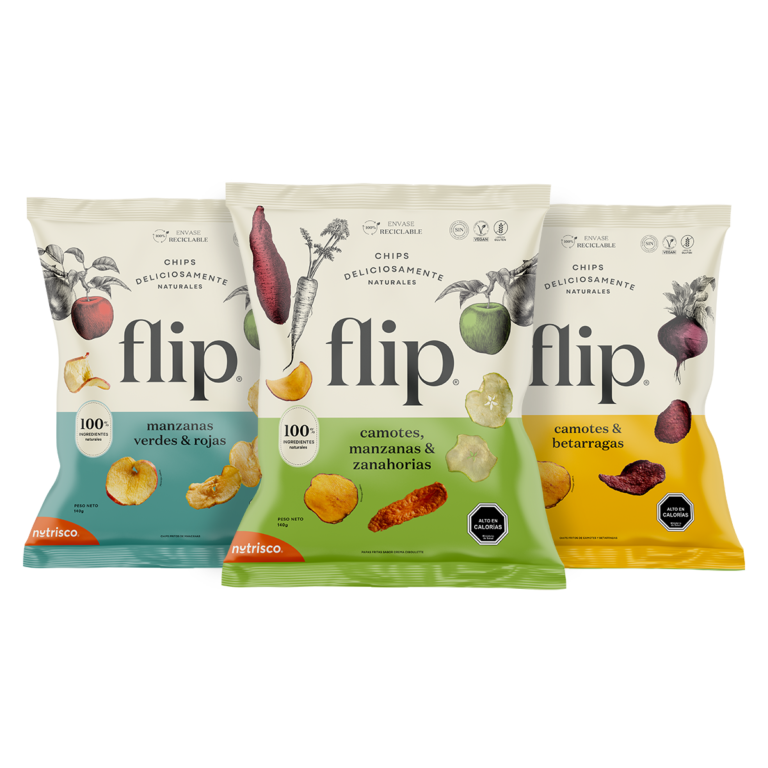 Flip is an innovative brand that redefines the snack category. Made with fruits and vegetables such as potatoes, sweet potatoes, and beets, its products are 100% natural and healthy. Thanks to its patented low-temperature frying technology, Flip offers crunchy chips full of flavor and nutrients, perfect for those looking for a delicious snack.
