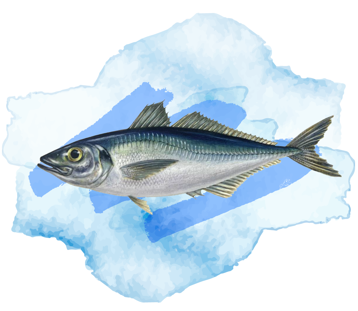 Nuestra pesca es 100% renovable. Este pez pelágico, que nada en cardúmenes en mar abierto, suele medir 45 cm (18 pulgadas) de largo y puede crecer hasta 70 cm (28 pulgadas).